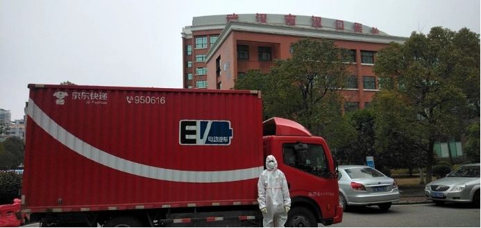 京东物流于2020年2月2日上午11点抵达武汉汉口医院