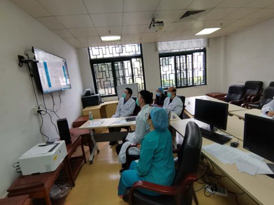 李时悦副院长提出,在结合市八医院目前已有的优良医疗资源及诊治经验的基础上,我们医疗队可以把特色的诊治技术、经验有机地融入进来,为新冠肺炎患者救治建言献策、添砖加瓦,例如在病原学检测方面,李时悦副院长和程璘令主任主动提供床旁可以开展的替代技术进行检测等,将会进一步优化患者的诊治工作。