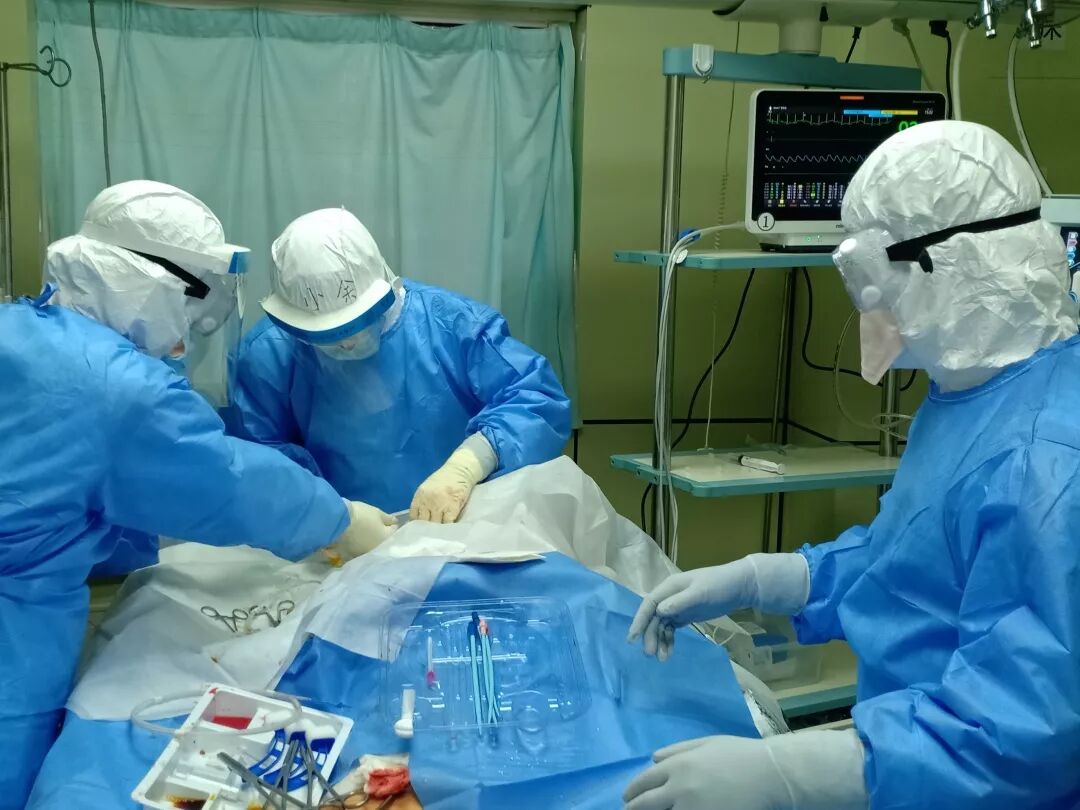 一番紧张的操作之后,医护人员的护目镜已经是雾蒙蒙,豆粒大的汗珠从头发里面渗出,贴身穿的手术衣已经全部湿透。
