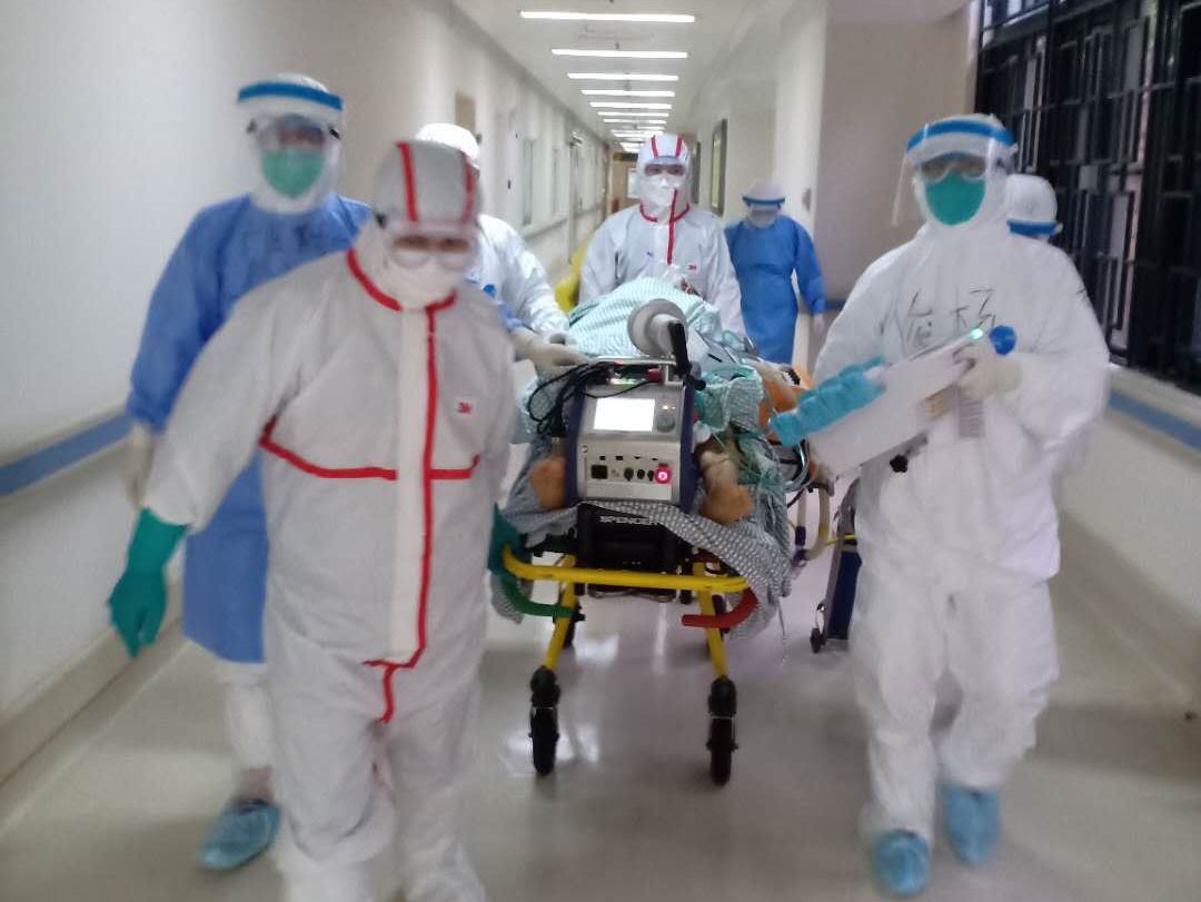 2月15日下午,一辆载着危重症新冠肺炎患者的120救护车呼啸而至,广州医科大学附属第一医院重症医学科医生徐永昊、护士张俊扬等医护人员从车上下来,将一位病情非常危急、已经做了体外膜肺(ECMO)的新冠肺炎患者一路奔跑着护送至八楼重症监护室病房。这是我院首次成功为一例ECMO支持下的新冠肺炎危重症患者实施转运工作。