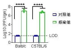 △模型小鼠感染后肺内新型冠状病毒复制情况