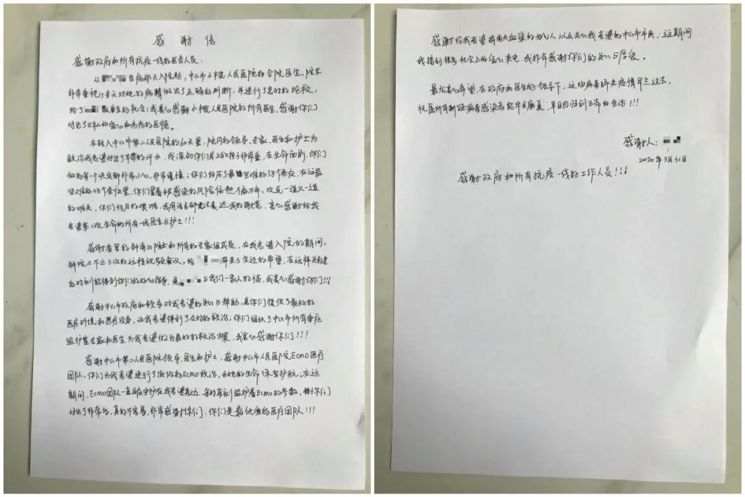 3月31日下午,让钟南山院士牵挂的中山新冠肺炎危重症产妇结束隔离器,终于要回家了,临行前,她的丈夫将这封感谢信交到医务人员的手中,并再三恳请务必帮他们向钟南山院士转达感激之情,“感谢医护人员,感谢钟南山院士,把我从死神手里拉了回来。”