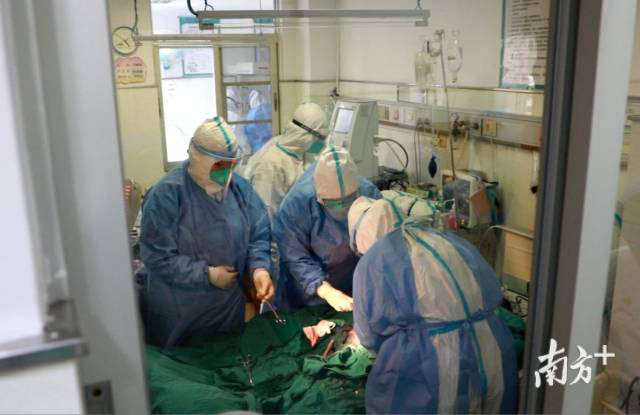 2月1日,中山市小榄人民医院的医生团队为彭晓抢救,进行终止妊娠手术。受访者供图